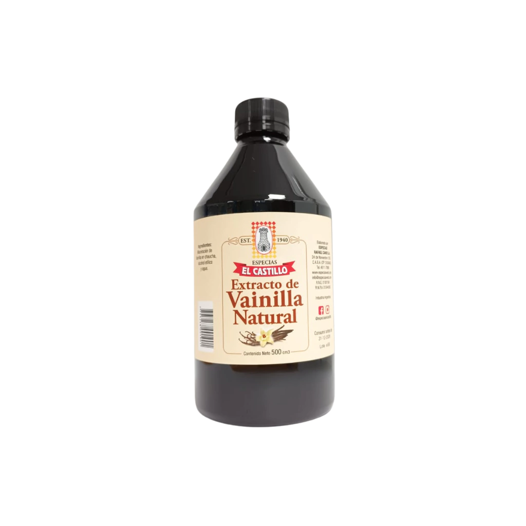 Ingredientes: vainilla en caucha macerada, alcohol etílico y agua.